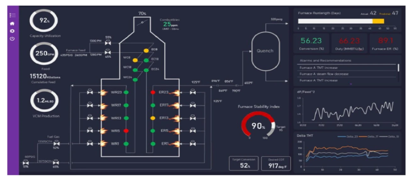 INGENERO’s HMS-F solution employs latest ML/AI analytical techniques for enhancing furnace operations. Operations can monitor and track furnace health in real time and detect health/performance degradation such as coke formation during thermal cracking. HMS-F solution provides insights and intelligence for operators to take action to arrest further deterioration and extend furnace run length.
