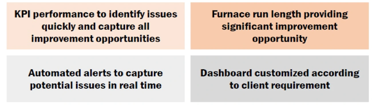 The solution defines threshold limits for an furnace representing its end of run limit and provides notifications accordingly on time remaining, thereby improving scheduling, maintenance, and operations.