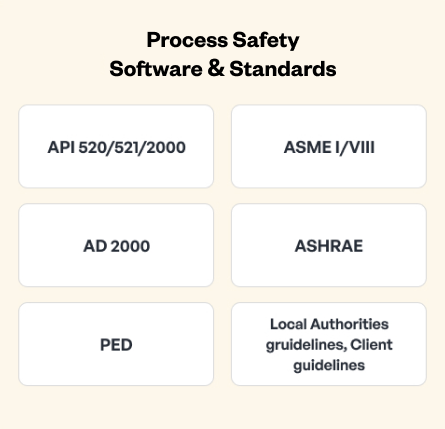 Relief devices validated and designed as per API 520/521 standards to comply with OSHA regulations
